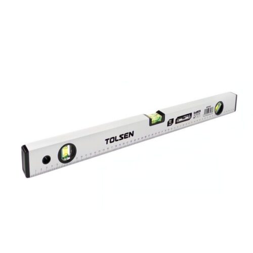 The Tolsen Spirit Level series, including models TOL35221 to TOL35229, is designed for precise measurements in construction and DIY projects. Constructed with a durable aluminum frame, these spirit levels feature a powder-coated surface and a scale reading for ease of use. Each level is 1.0mm thick and provides an accuracy of 1.0mm/m. The three vials (90°, 180°, and 45°) ensure versatile use for different leveling needs. Available in lengths ranging from 400mm to 2000mm, these spirit levels are essential for achieving accurate horizontal and vertical alignment in various applications.